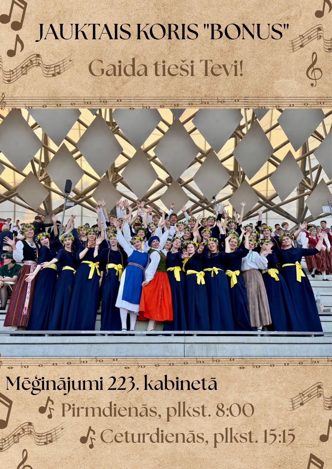 Jauktais koris BONUS uzņem jaunus dziedātājus