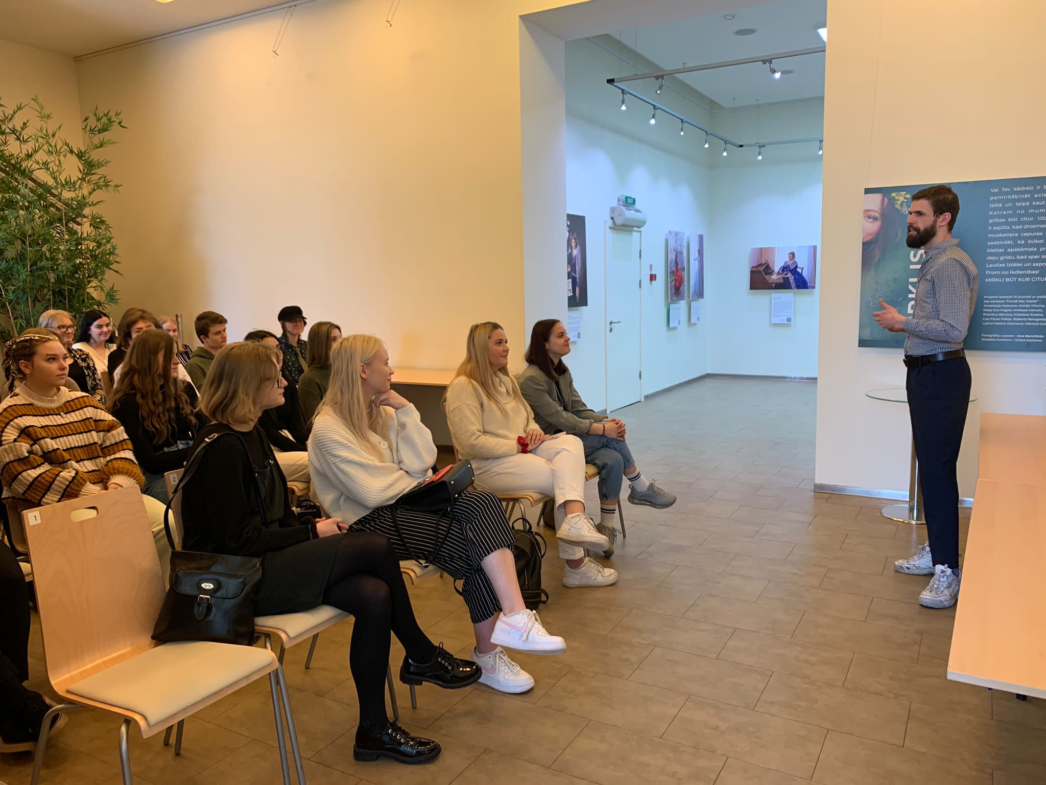 Pēc mūsu sagaidīšanas devāmies uz auditoriju, kurā gids, kas izvēlējās palikt anonīms, pastāstīja mums par ES māju, tās piedāvātajām iespējām un Eiropas eksāmenu, kā arī rosināja mūs uz diskusiju par jauniešu iesaisti aktīvismā. Kādu brīdi uzkavējāmies un aplūkojām galeriju, tad kājām devāmies ceļā uz Augstāko tiesu, mūsu nākamo galamērķi.