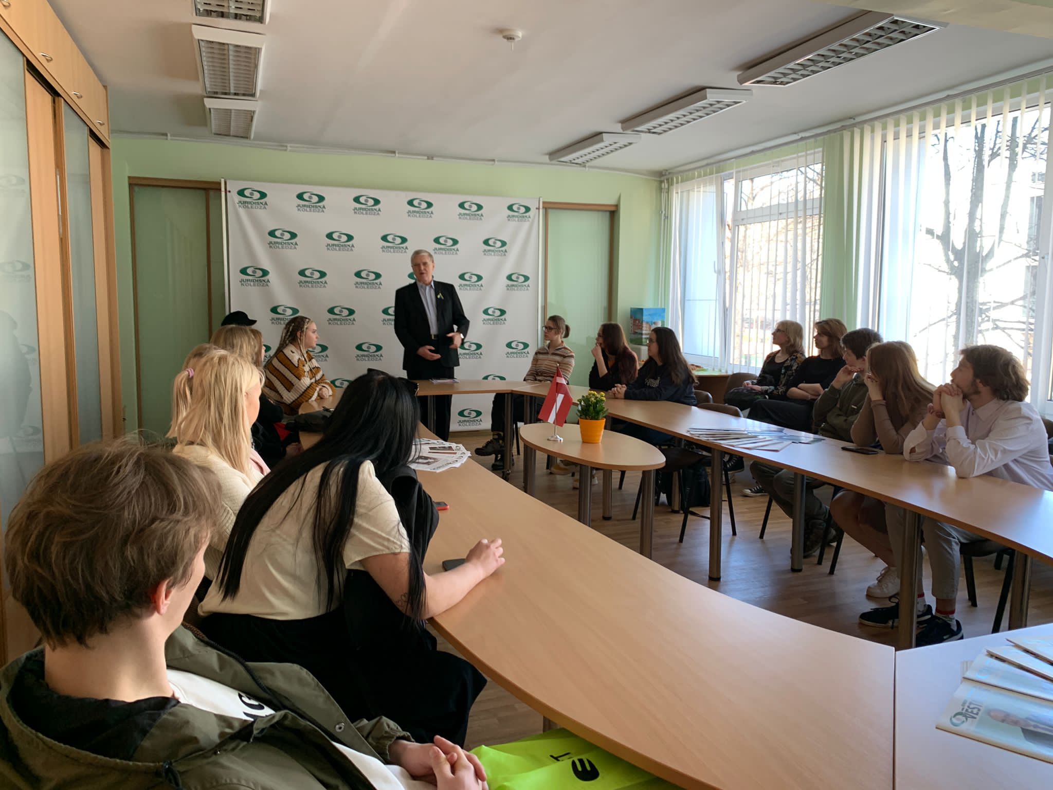 Ar to noslēdzās mūsu tūre Senātā un devāmies tālāk. Bija atlicis tikai pēdējā pieturas punkta — Juridiskās koledžas — apmeklējums. Pēc krietni vien garākas distances mērošanas kājām nekā starp iepriekšējām vietām, nonācām Rīgas Valsts tehnikuma ēkā, kurā mājo arī Juridiskā koledža. Ienākot tās klasē, mūs sagaidīja galds dažādu pīrādziņu, cepumu, sulu un citu našķu. Juridiskās koledžas direktora Tālava Jundža vadībā izgājām cauri diskusijai par prezidenta un parlamenta struktūru un vēlēšanām, ar ko, praktiski, arī mūsu Rīgas apciemojums bija noslēdzies. Pirms devāmies prom, paklausīgi sekojām norādījumam “neatstājiet neko“ un kolektīvi apēdām pilnīgi visu ēdamo, kas bija piedāvāts.