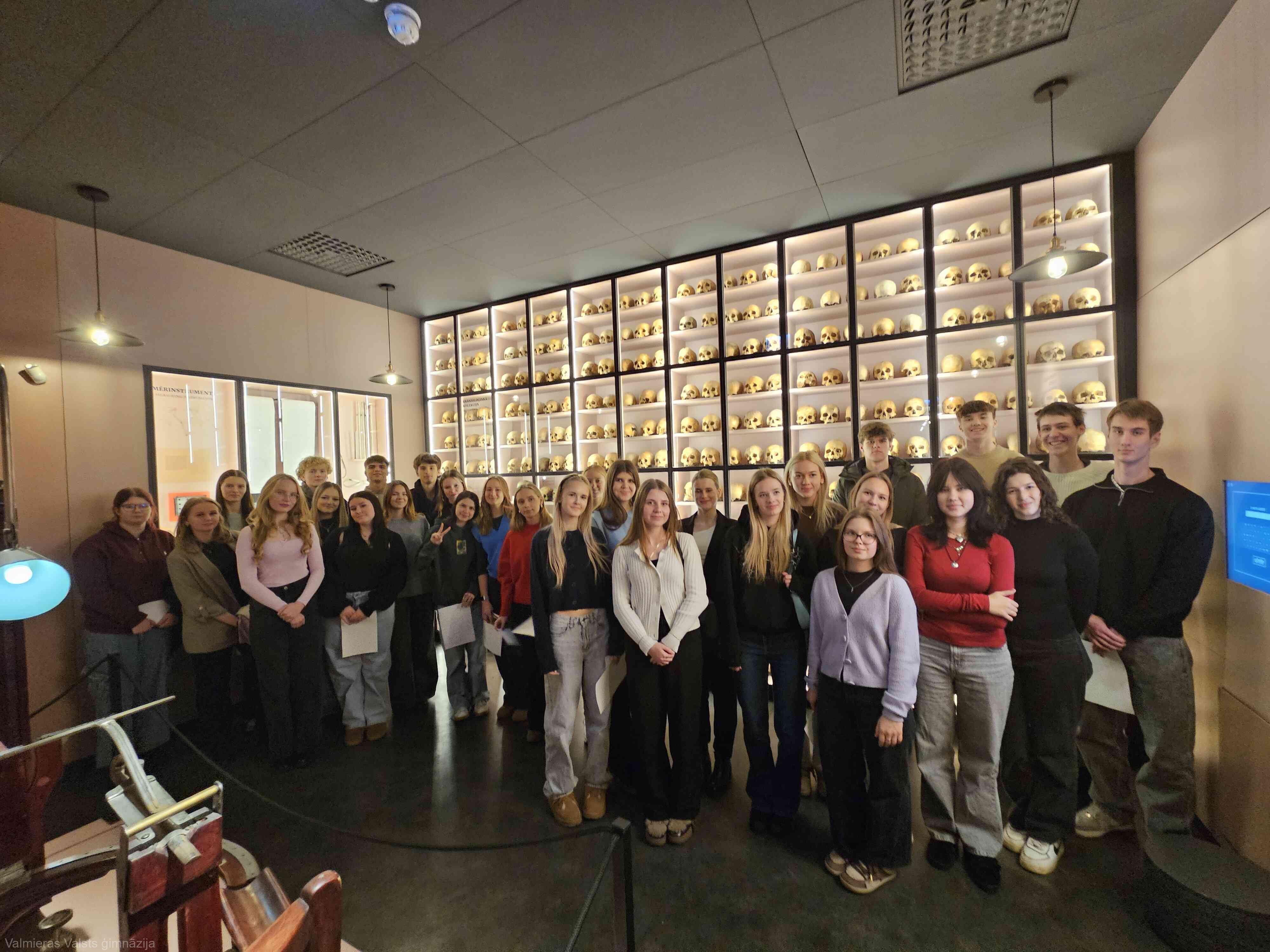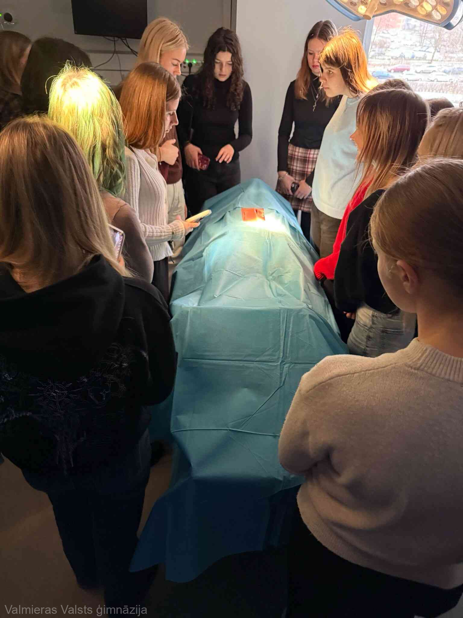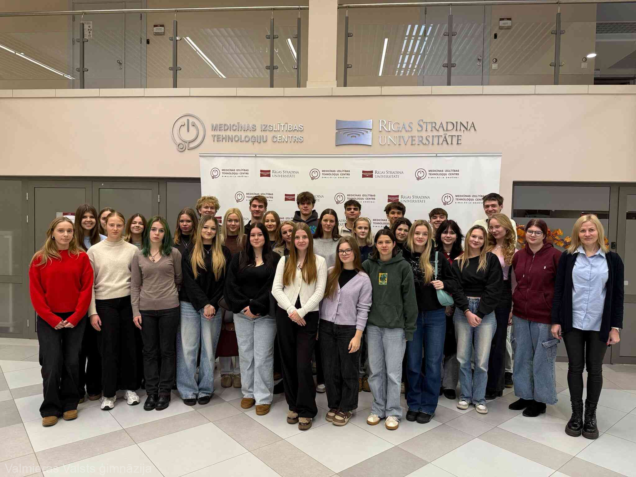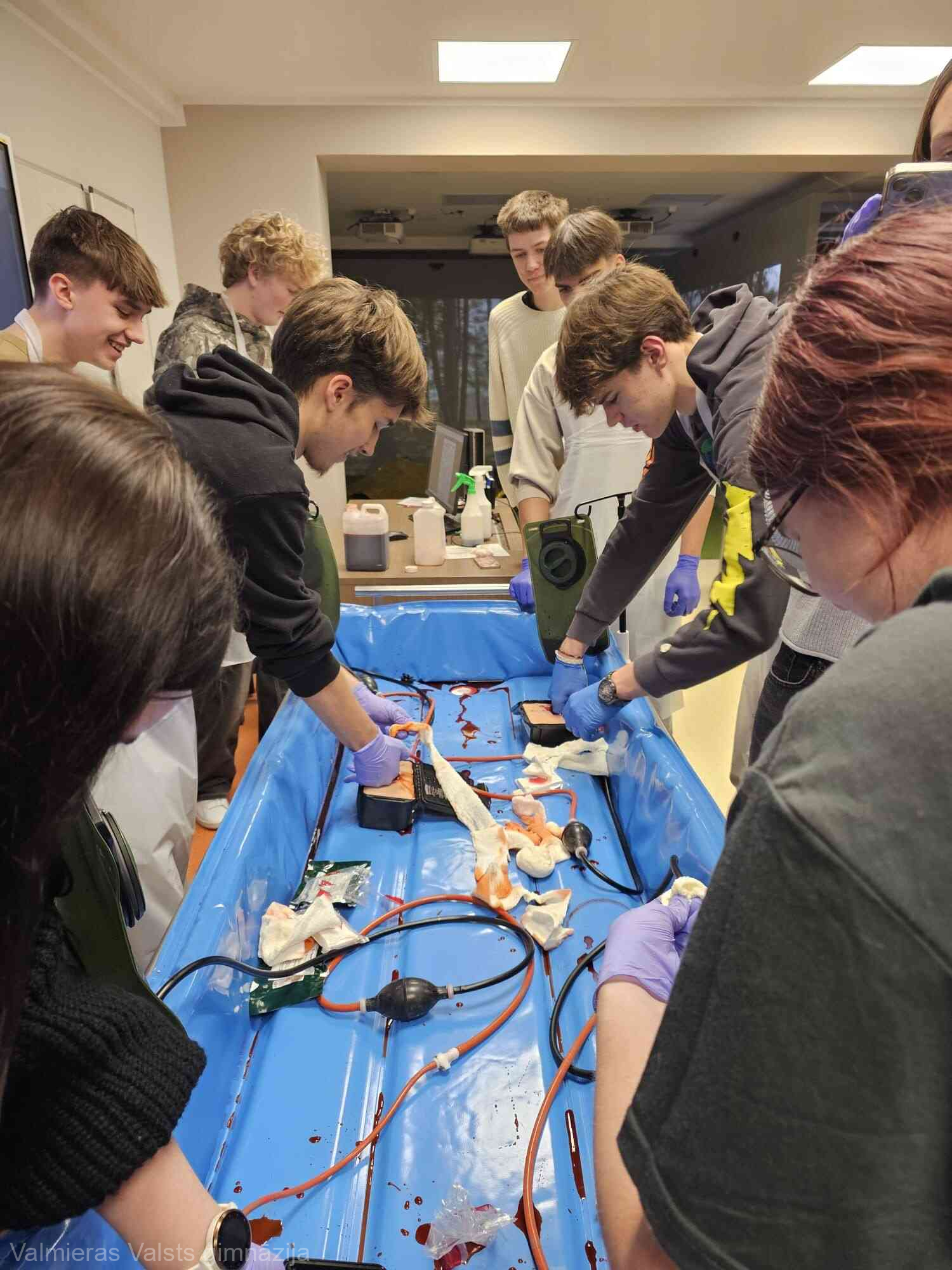 25.novembrī 11.b klase (medicīnas ievirzes) devās izglītojošā izbraukuma nodarbībā un apmeklēja RSU MITC. Nodarbību laikā skolēniem bija iespēja darboties militārās medicīnas zonā, kur mācījās uzlikt sev žņaugu, kā arī apturēt asiņošanu, tamponējot vaļēju brūci situācijās, kad žņaugu nav iespējams uzlikt. Mācījās izmantot needle compresion adatu, kuru, iedurot ribstarpā var izvadīt no plaušām gaisu, lai cilvēks varētu atsākt elpot. Vēl bija iespēja redzēt simulācijas manekenus, uz kuriem RSU studenti apgūst prasmes un iemaņas gan pirmās palīdzības sniegšanā, gan operāciju zālē, gan dzemdniecībā. Paldies nodarbību vadītājām Marikai Dailai Birzniecei un Annai Bosjukai par interesantajām un vērtīgajām nodarbībām! Izglītošanās turpinājās RSU Anatomijas muzejā, kurā uzzināja, ka pēc galvaskausa var noteikt cilvēka vecumu un dzimumu. Skolēni nodarbības vadītājas pavadībā zīmēja galvaskausu. Noslēgumā apskatīja un guva ieskatu anatomijas muzeja vēsturē un cilvēka anatomijā. Gide vairākkārt uzslavēja skolēnus par labajām zināšanām. Dienas noslēgumā visi noklausījās RSU Jauno mediķu akadēmijas nodarbību “Neonatoloģijā”. Šodien iegūtās zināšanas noteikti noderēs turpmākajā mācību procesā un ikdienā.