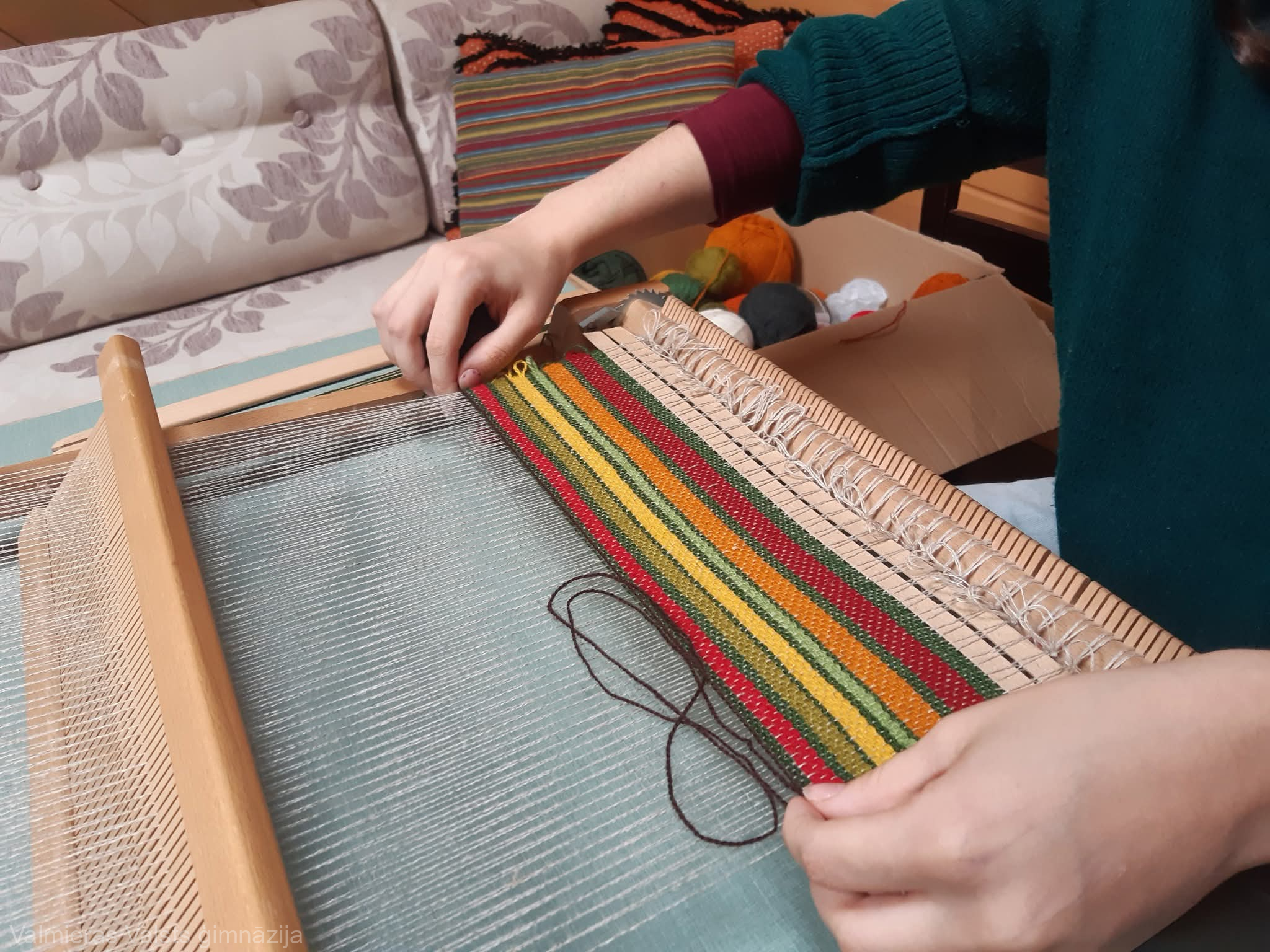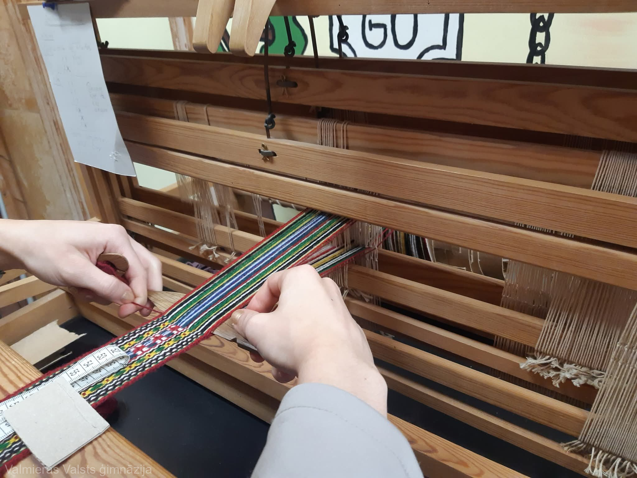 Skolēnu grupām bija iespēja apmeklēt un vērot darbošanos studijā, kā arī pašiem apsēsties lielajās stellēs, izmēģinot aušanas procesu.
