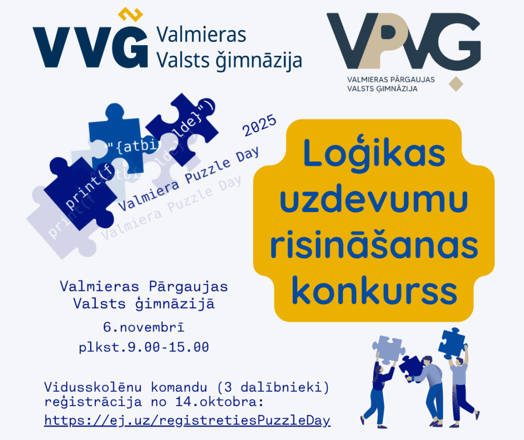 Nu jau 3. reizi Valmieras novada vidusskolēniem ir iespējas apliecināt savas komandas sadarbības prasmes un loģiskās domāšanas spējas aizraujošās komandu sacensībās “Valmiera Puzzle Day”.